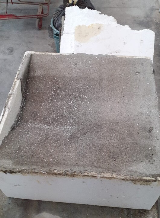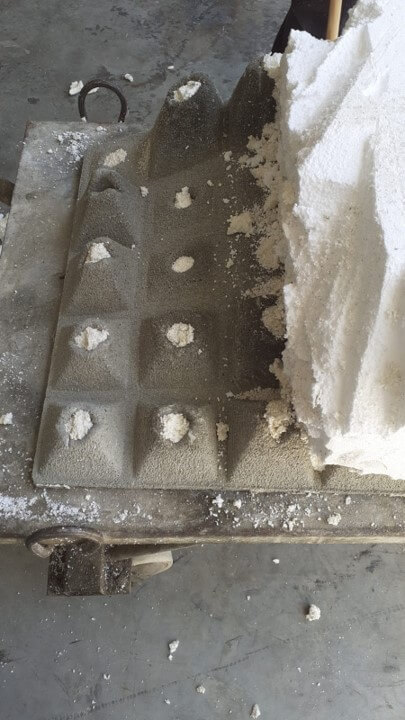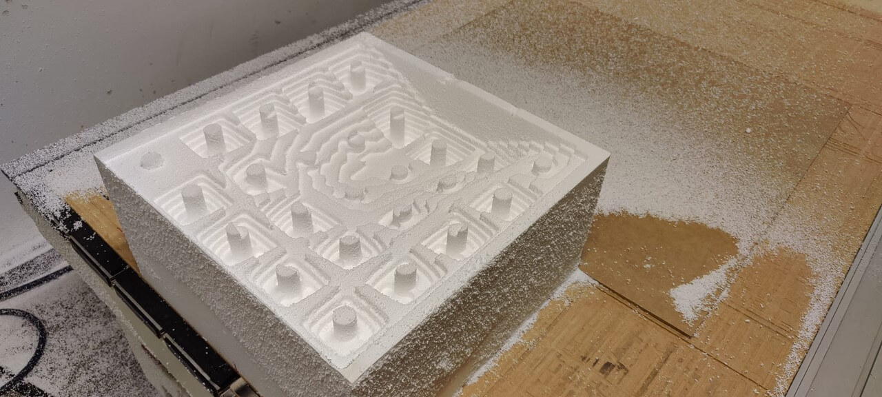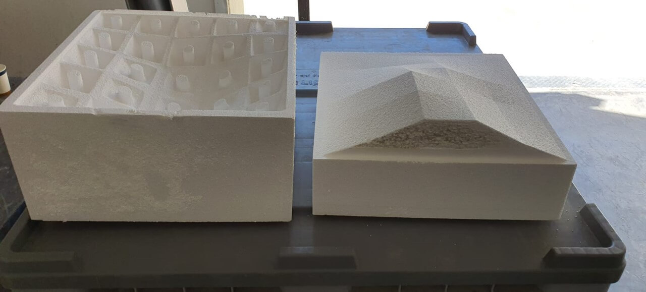 Thirdly, Manufacturing was composed of 3 main steps, (1) Manufacturing of the mold from styrofoam by CNC milling, (2) Casting the concrete in the mold and drying over 1 week, (3) Extracting the concrete tile from the mold, *the mold did not survive the process and was destroyed upon extraction.