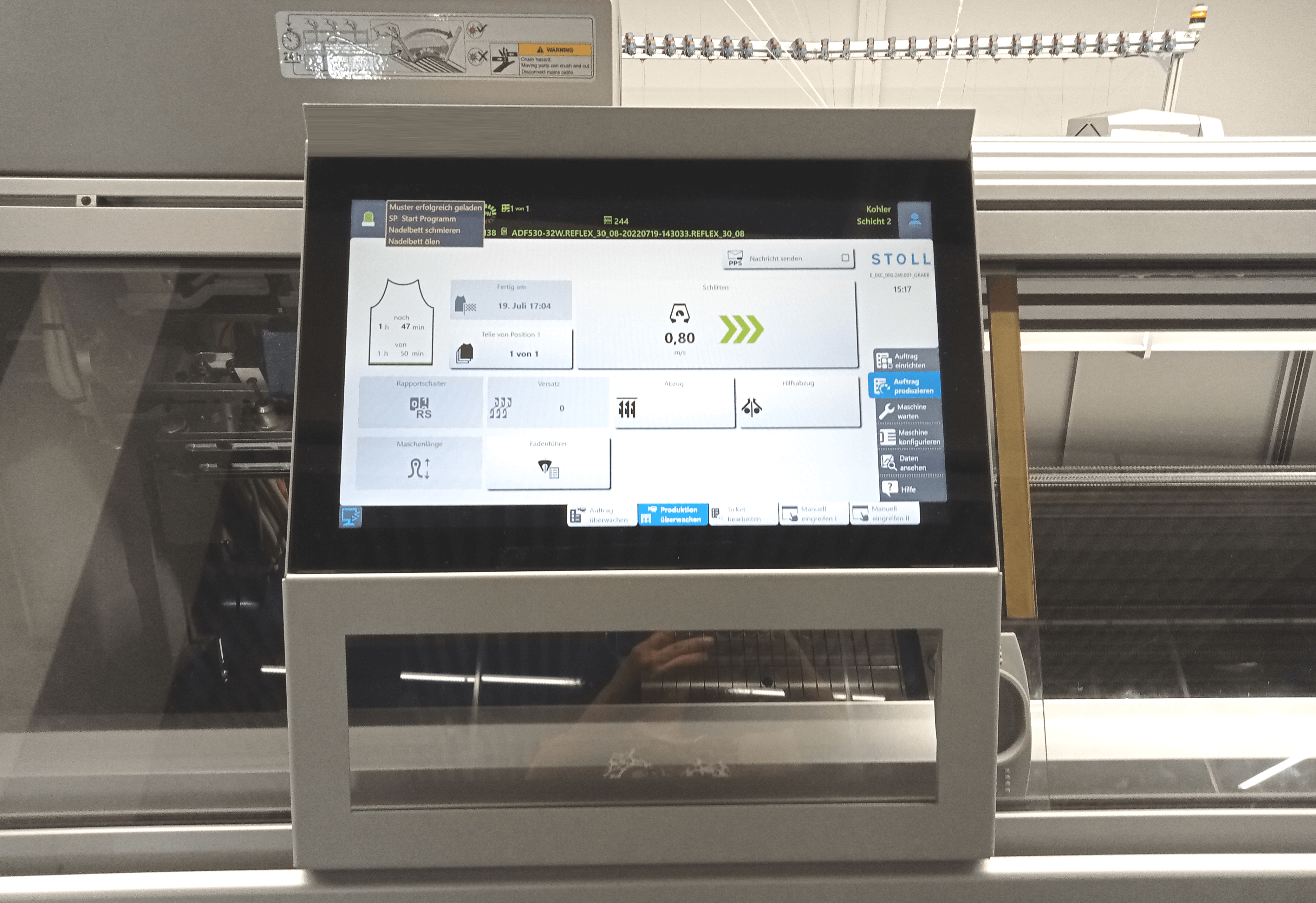 The 1366×768-pixel wide view color display with multi-touch screen is practical and clear. The individual user interface and intuitive menu guide enable pattern changes to be entered easily and directly on the machine.