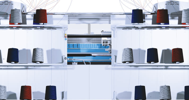 The V-Shaped arranged yarn control unit supports a cross-free, direct yarn feeding.